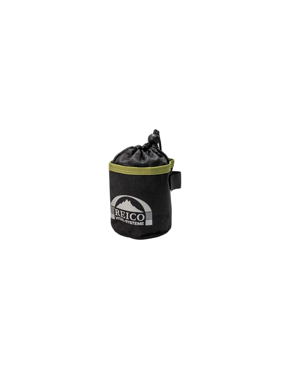 Questa è la nostra borsa Reico. È realizzato in materiale robusto e idrorepellente, ha un attraente logo Reico e una pratica clip da cintura.
