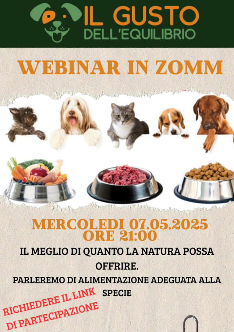MERCOLEDI 07/05/25 ore 21,00 serata di ALIMENTAZIONE CONSAPEVOLE per persone che vogliono sapere scegliere cosa mettere nella ciotola Che cosa significa equilibrio minerale secondo Reco? – L’equilibrio minerale è cruciale per la salute degli animali. La produzione alimentare attuale presenta…