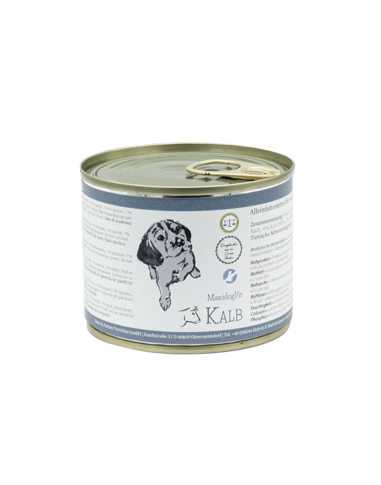 MaxidogVit® Kalb è un mangime completo con materie prime di alta qualità prodotto in Germania e riempito delicatamente a freddo. Non contiene additivi artificiali, aromi o conservanti e non contiene zuccheri aggiunti. Prova le nostre altre varietà per una maggiore varietà.